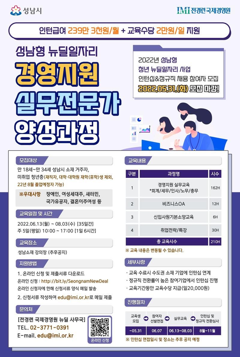 [2022 성남시 뉴딜 일자리 사업] 경영지원 실무전문가 인턴십 과정 참여자 모집