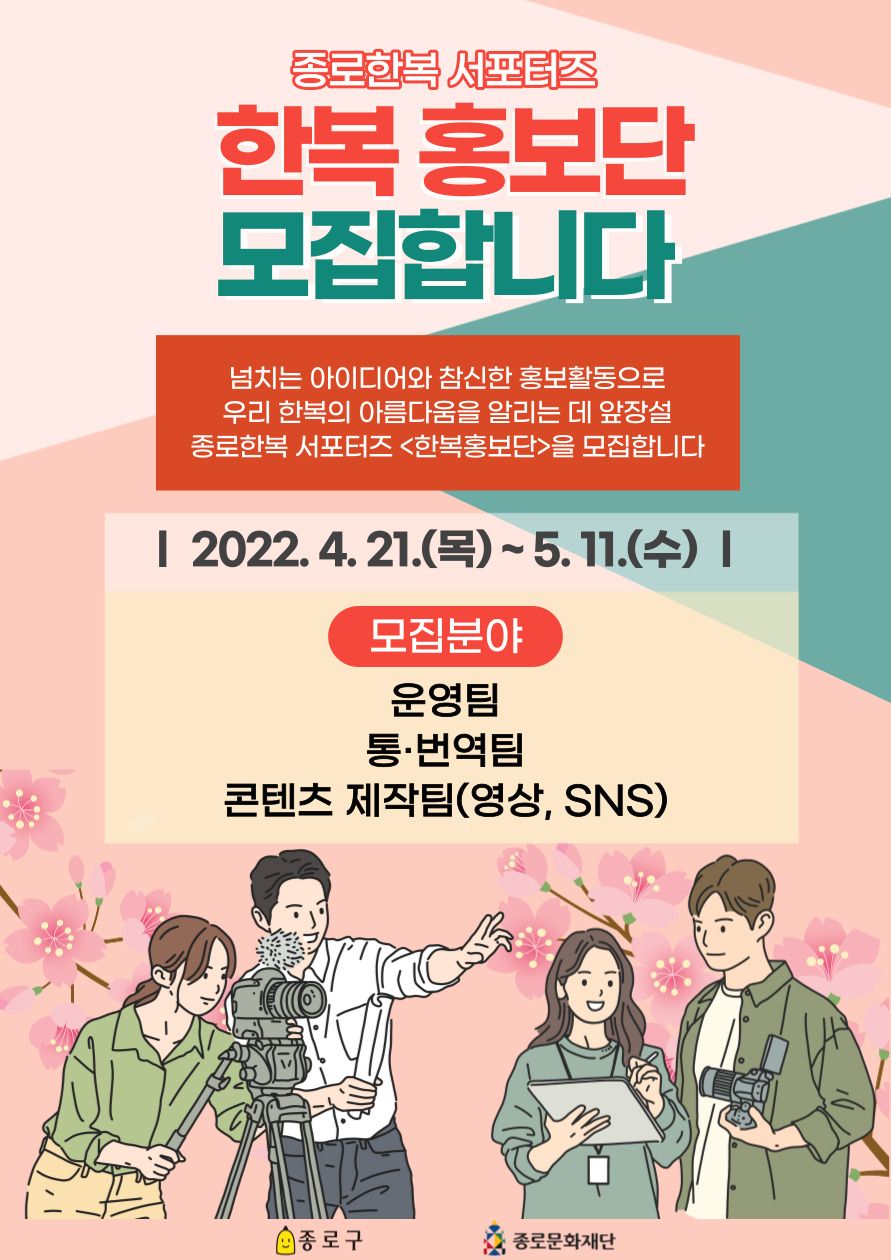주체적인 역할을 수행할 종로한복 서포터즈 ‘한복홍보단’을 다음과 같이 모집합니다.