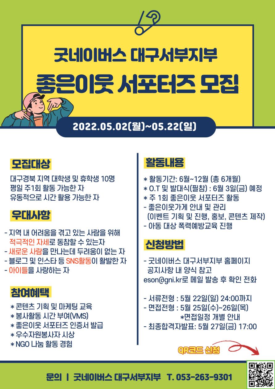 * 각 파일 제목은 [2022년 좋은이웃 서포터즈 신청_000(이름)] 으로 발송 필히 요망