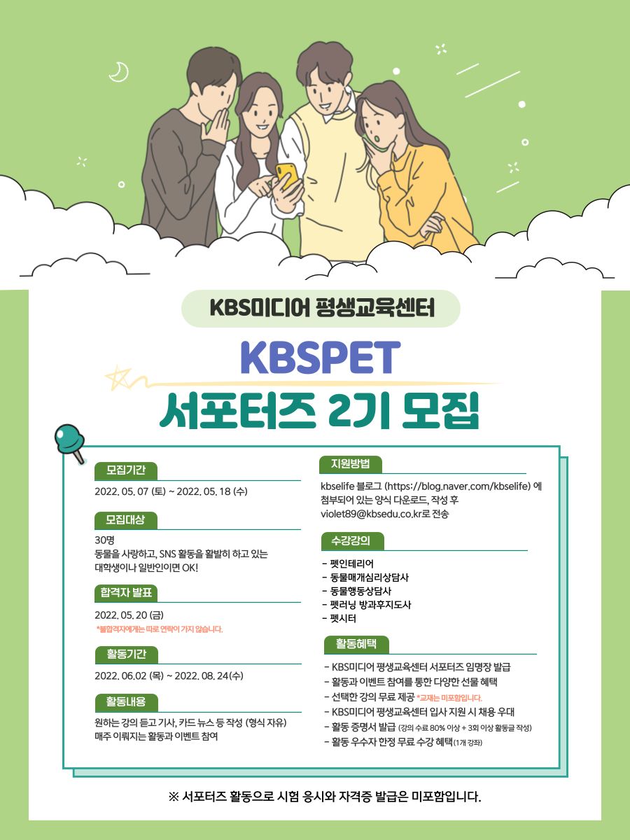 안녕하세요, KBS미디어평생교육센터 PET 서포터즈 2기 멤버를 모집합니다 :)