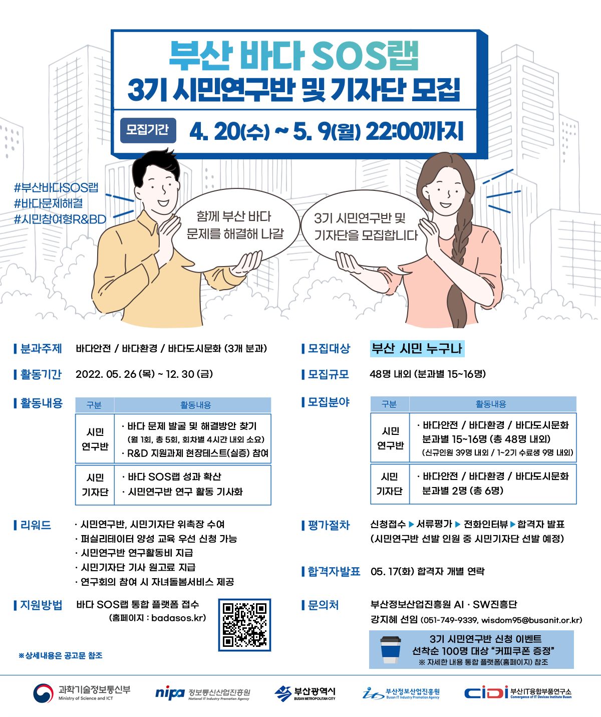 부산바다SOS랩 3기 시민연구반 및 기자단 모집