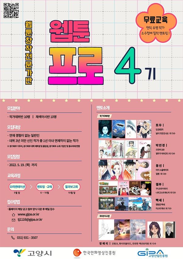 웹툰창작 전문가반 『웹툰 프로 4기』 교육생 모집 연장 공고