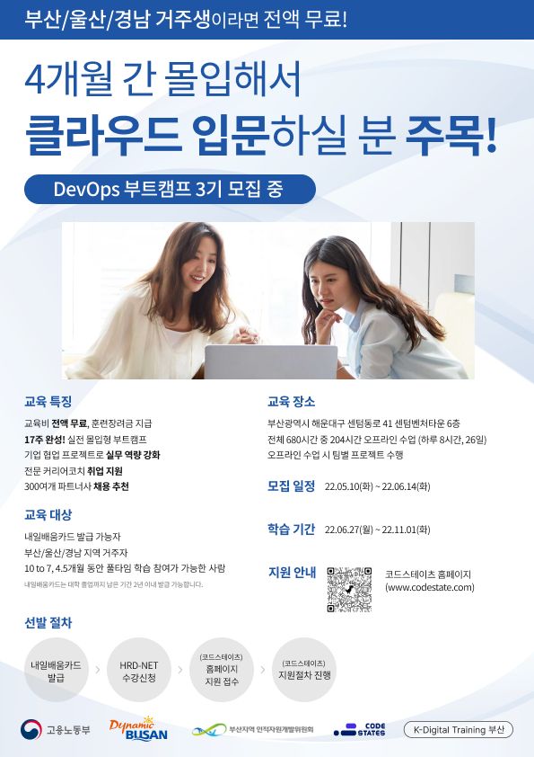 📣 부산, 울산, 경남 지역 거주생을 대상으로 하는 DevOps 부트캠프 2기 수강생을 모집합니다.📣