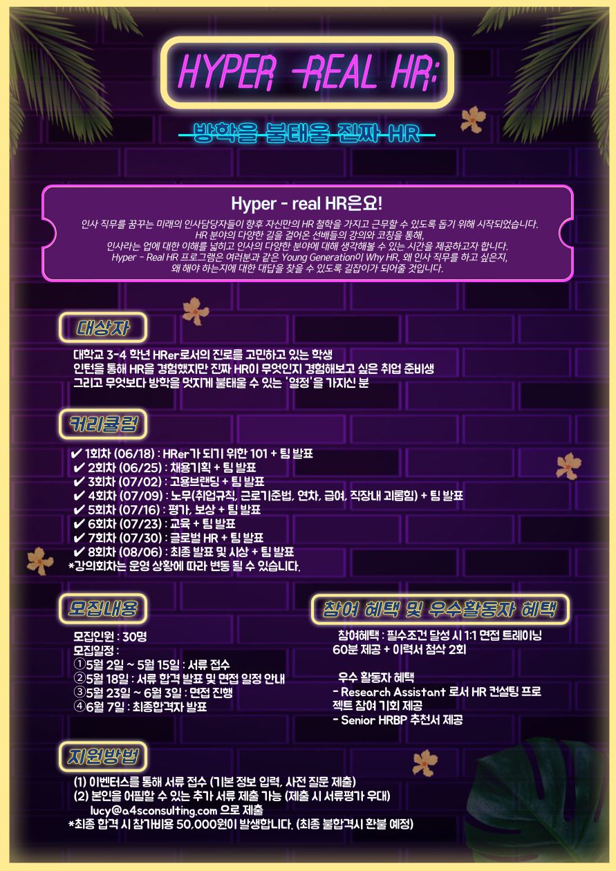 Hyper - Real HR 프로그램은 여러분과 같은 Young Generation이 Why HR, 왜 인사 직무를 하고 싶은지, 왜 해야 하는지에 대한 대답을 찾을 수 있도록 길잡이가 되어줄 것입니다.