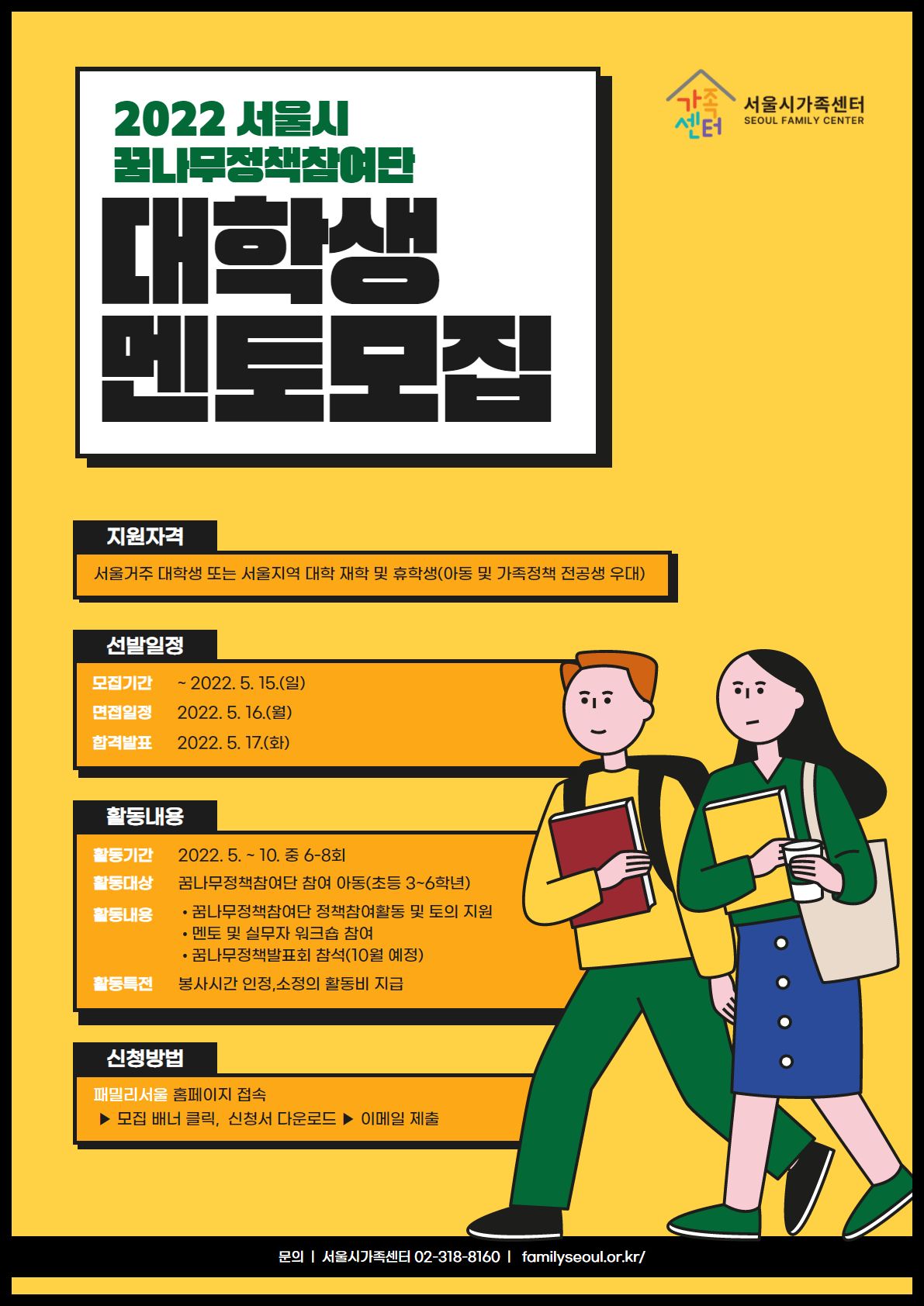 ■ 모집대상: 서울 거주 대학생 또는 서울지역 대학 재학 및 휴학생(아동 및 가족정책 전공생 우대)