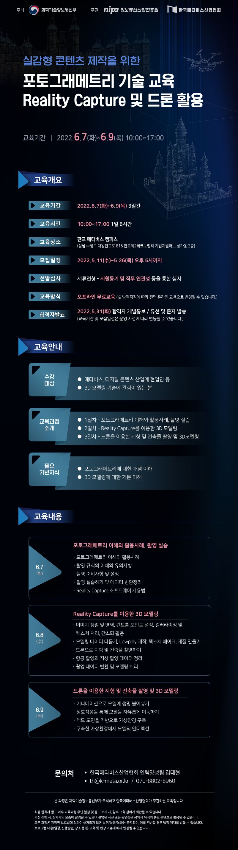 ① 교육과정명 : 실감형 콘텐츠 제작을 위한 포토그래메트리 기술 교육 Reality Capture 및 드론 활용