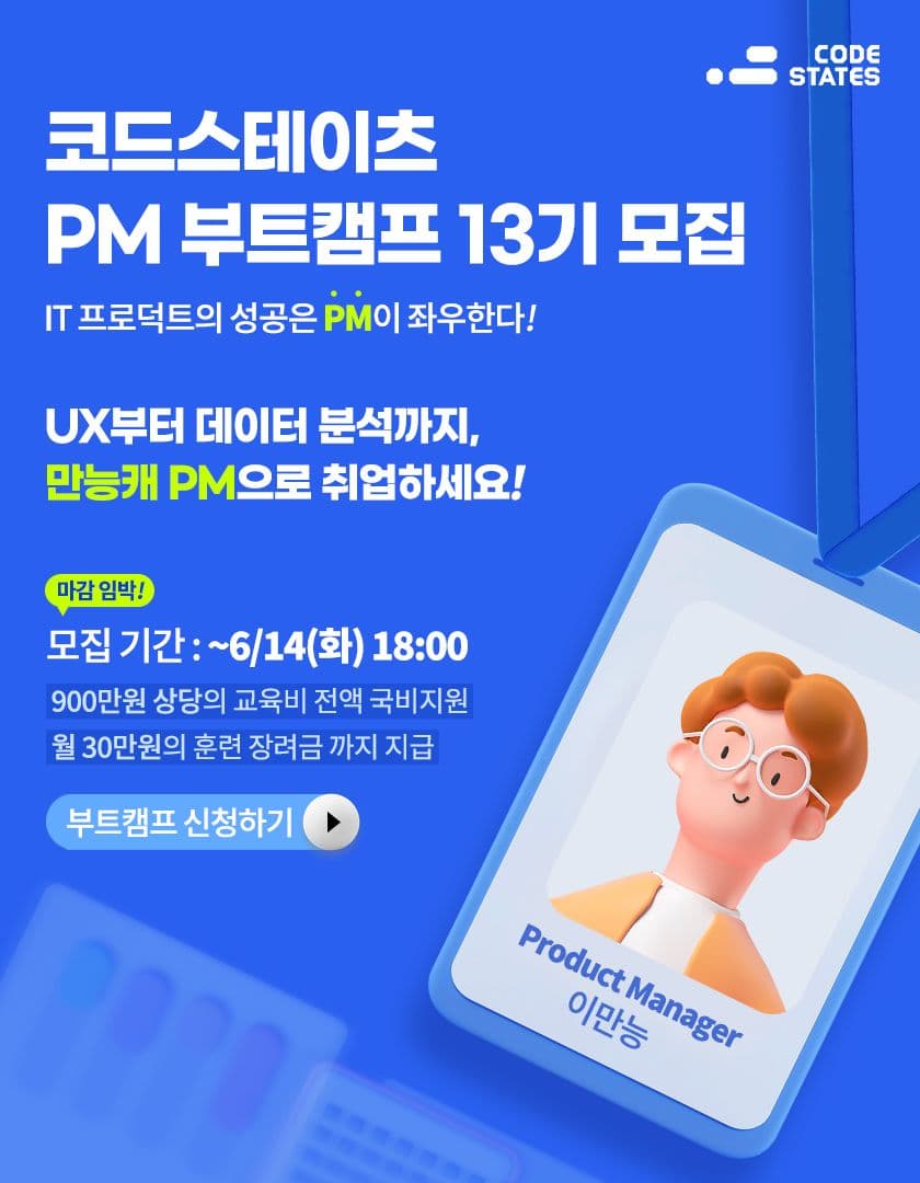 <코드스테이츠 프로덕트 매니지먼트 부트캠프> 13기 수강생을 모집합니다!