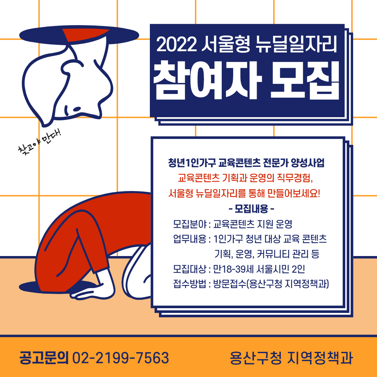 업무내용 : 1인가구 청년대상 교육 콘텐츠 기획, 운영, 커뮤니티 관리 등