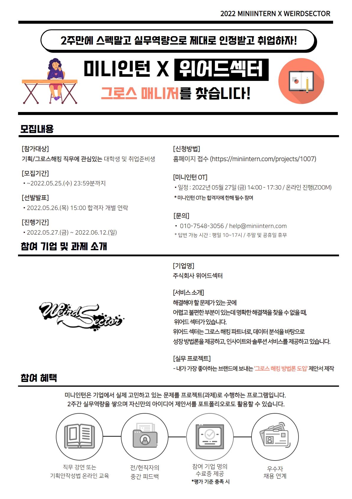 ‘위어드섹터’의 그로스 매니저(기획/그로스해킹)를 찾습니다.