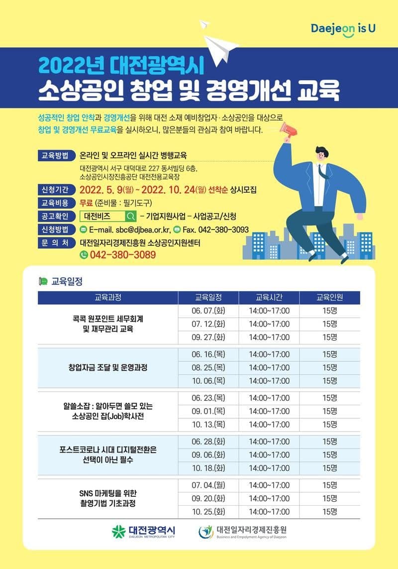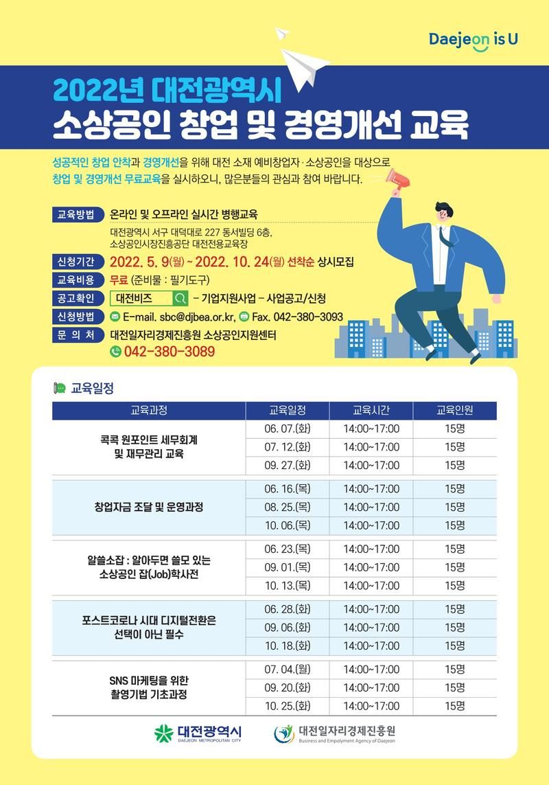 대전광역시와 대전일자리경제진흥원에서 예비창업자, 소상공인을 대상으로