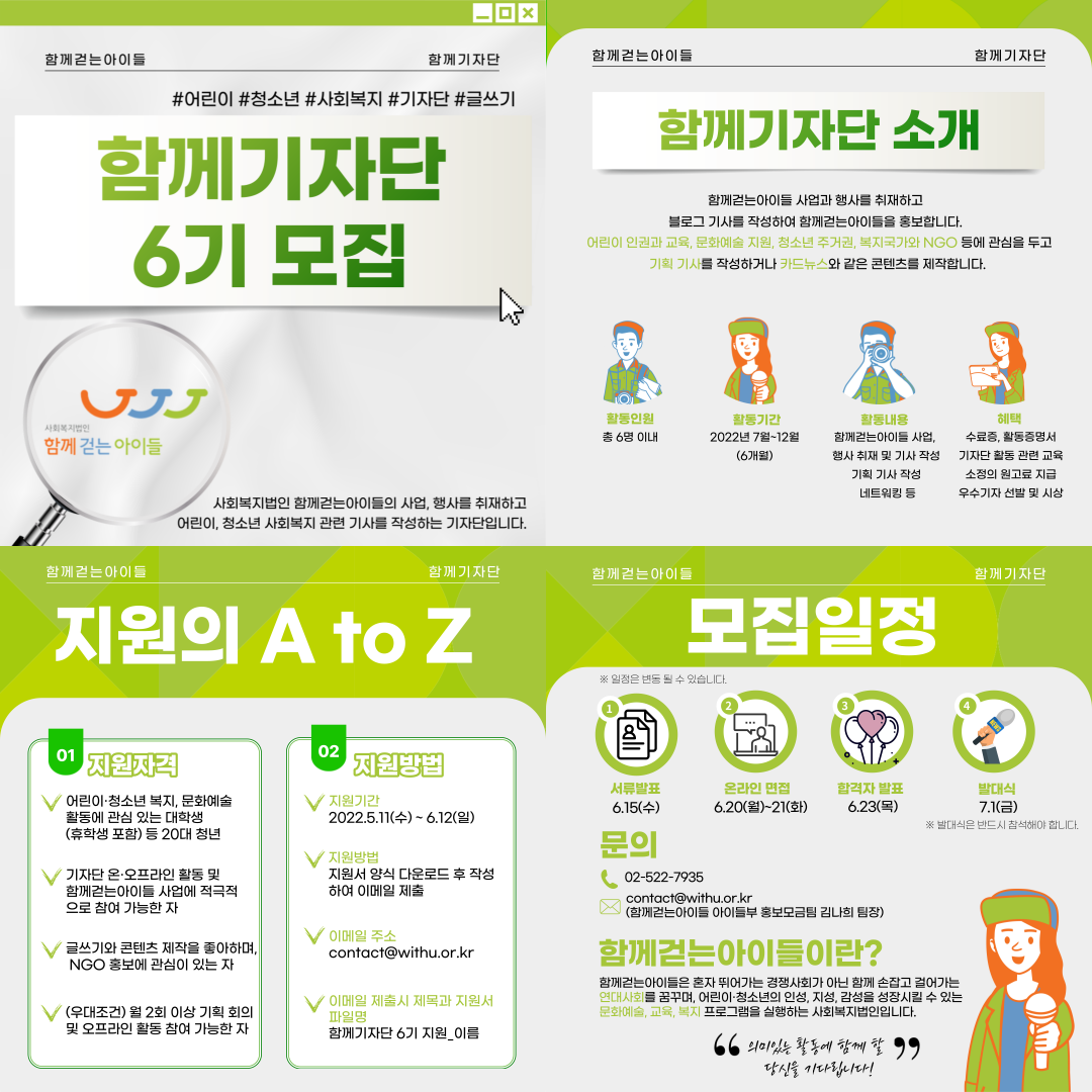 02)522-7935 / contact@withu.or.kr (함께걷는아이들 아이들부 홍보모금팀 김나희 팀장)