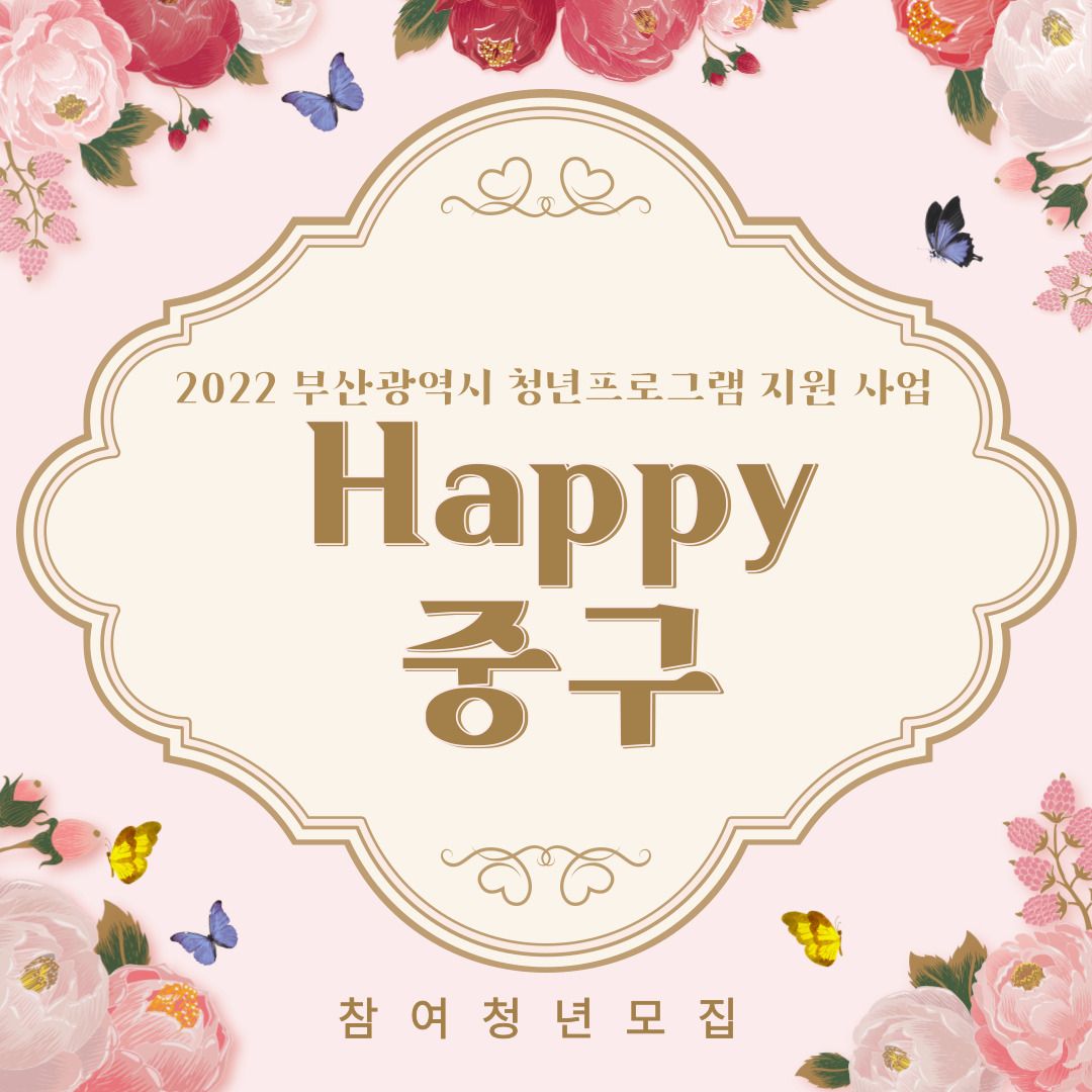 청년의 사회참여 및 역량 강화를 위한 「2022 청년 프로그램 지원사업」 “HAPPY_중구” 참여 청년을 아래와 같이 모집하오니 많은 참여를 바랍니다.