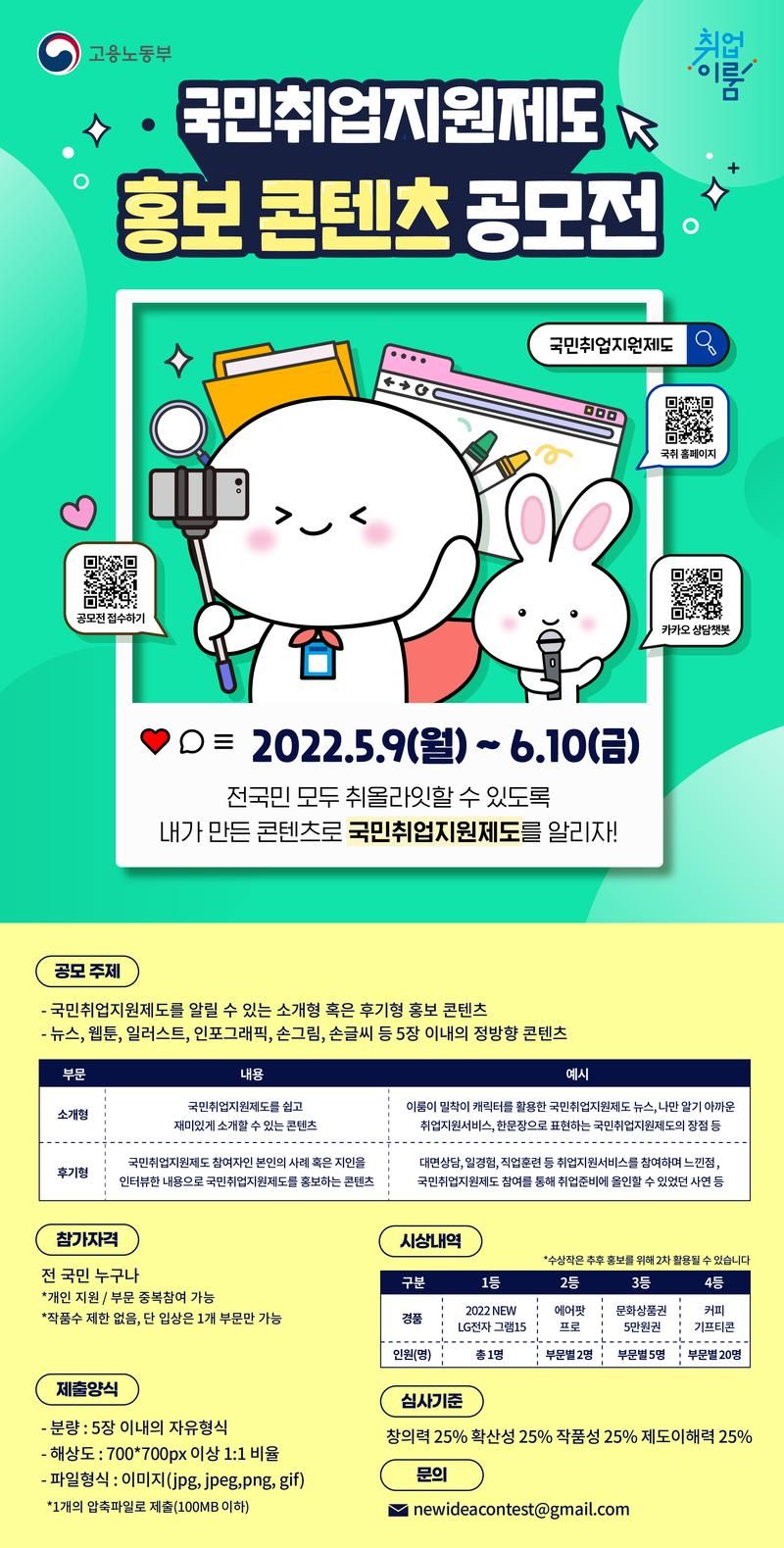 ex) 이룸이 밀착이 캐릭터를 활용한 국민취업지원제도 뉴스, 나만 알기 아까운 취업지원서비스, 한문장으로 표현하는 국민취업지원제도의 장점 등