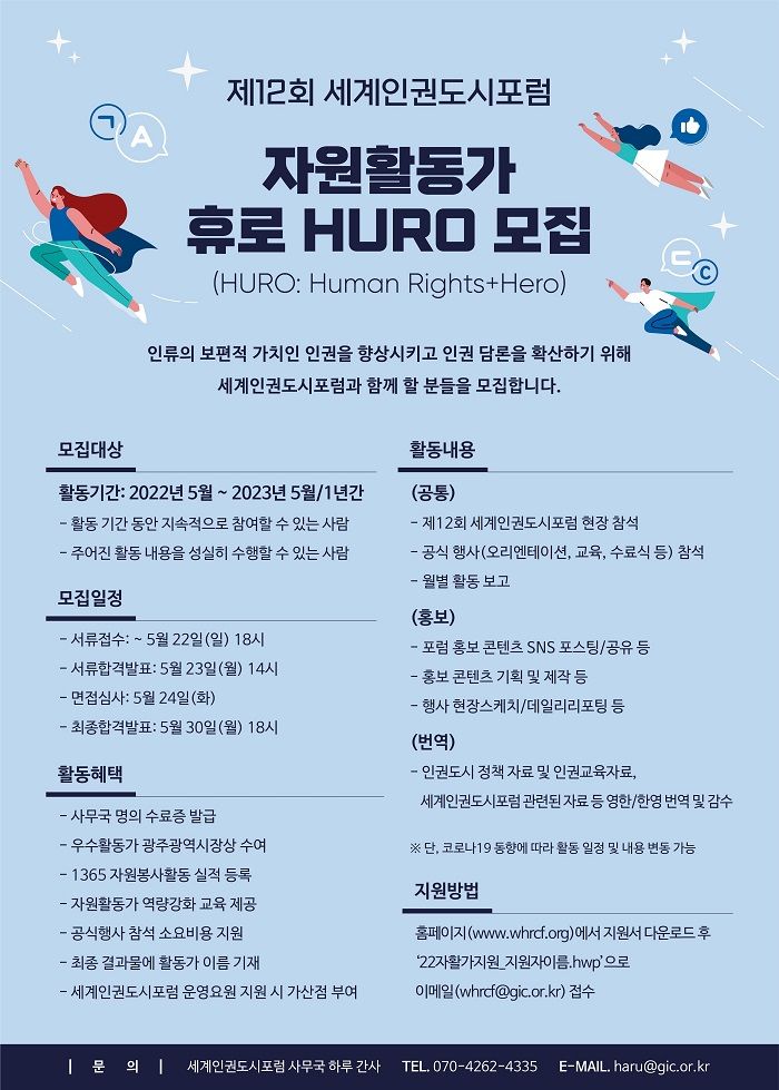 세계인권도시포럼 / 자원활동가 'Huro(Human Rights Heros)’