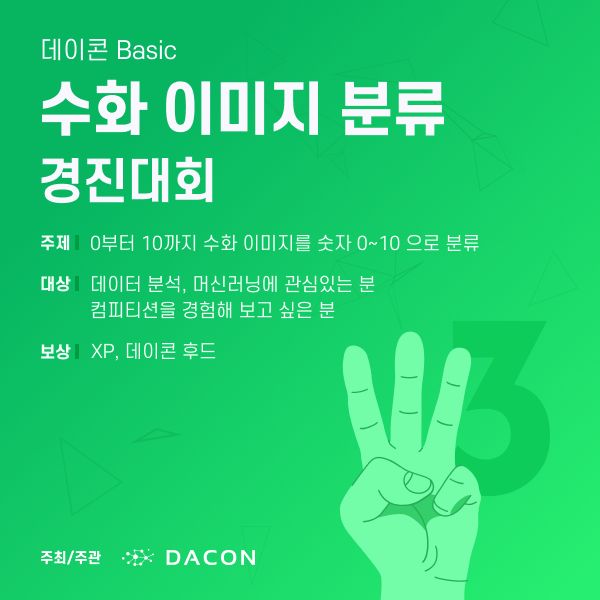 안녕하세요 여러분! 수화 이미지 분류 경진대회에 오신 것을 환영합니다.
