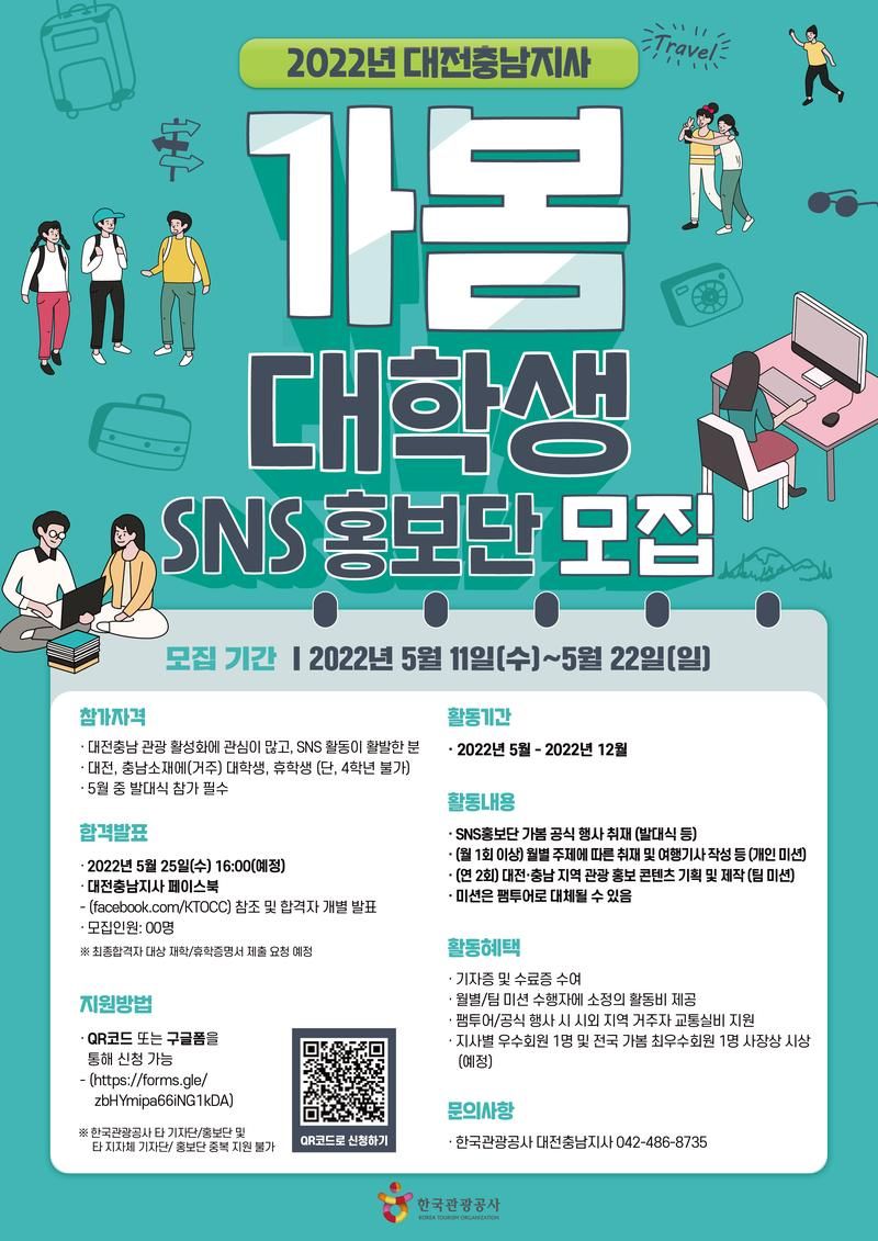 한국관광공사 대전충남지사에서 2022년 대학생 SNS홍보단 가봄을 모집