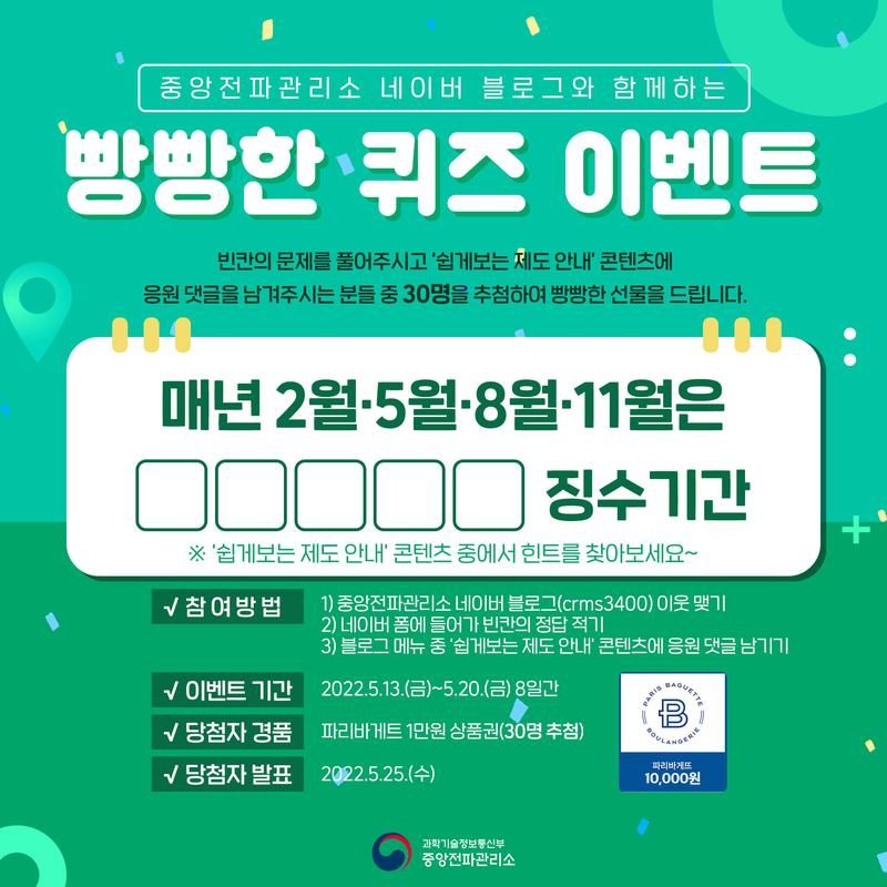 중앙전파관리소 네이버 블로그와 함께하는 빵빵🍞한 퀴즈 이벤트
