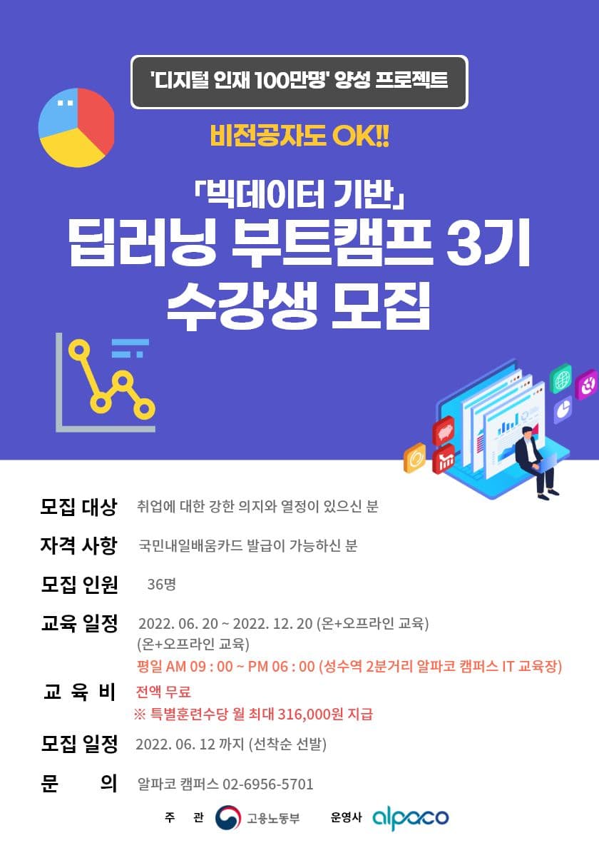 누구나 테크코스, [빅데이터 기반] 딥러닝 부트캠프 3기 수강생 모집!!