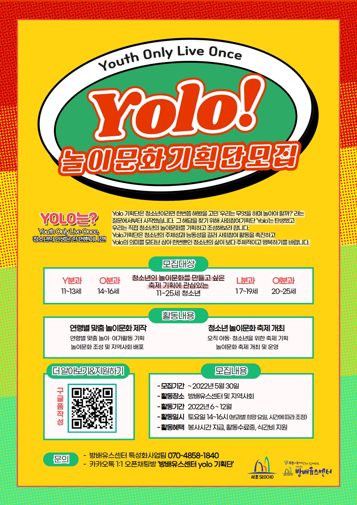 [청소년놀이문화기획단 'YOLO' 청년단원 모집]
