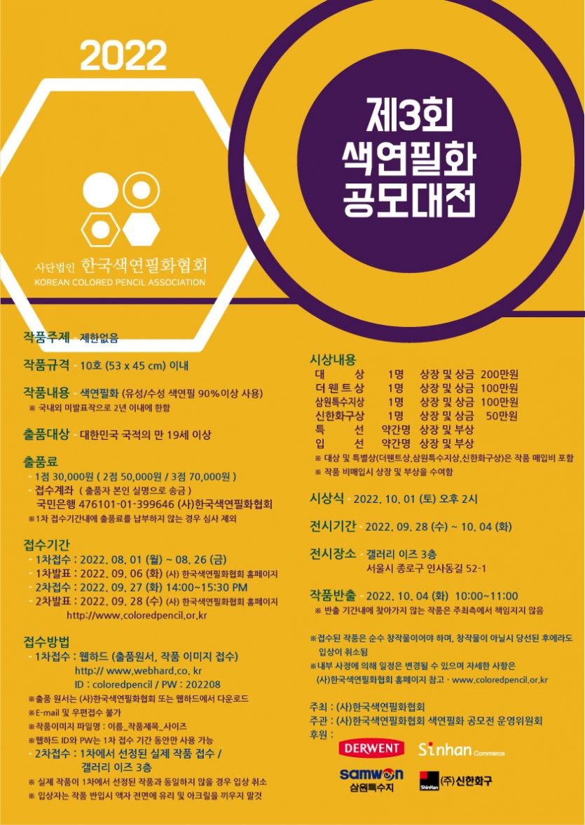 ※ 내부 사정에 의해 일정은 변경될 수 있으며 자세한 사항은 (사)한국색연필화협회 홈페이지 참고