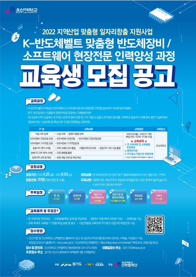 - 접수 및 문의처 : 오산대학교 산학협력단 맹미란(전화: 031-370-2556)