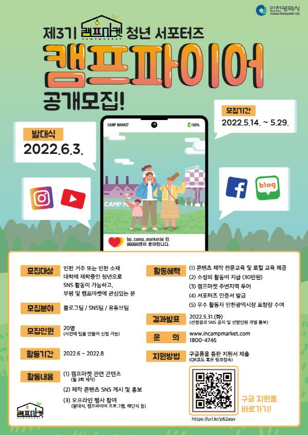 - 인천 거주 또는 인천 소재 대학에 재학중인 청년으로 SNS(페이스북, 인스타그램, 유튜브, 블로그)활동이 가능하고, 부평 및 캠프마켓에 관심있는 분