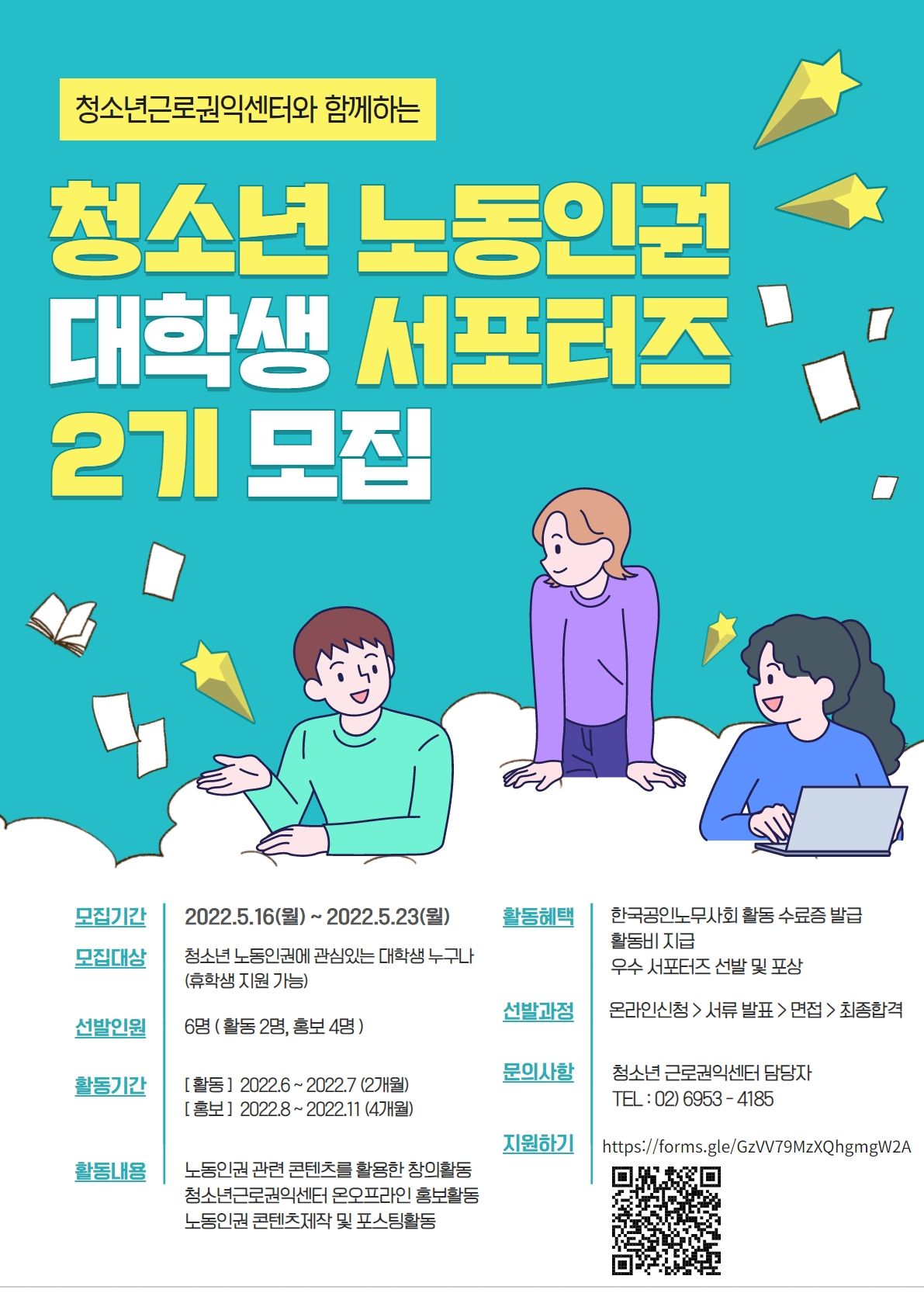 청소년근로권익센터에서 청소년 노동인권 서포터즈 2기를 모집합니다.