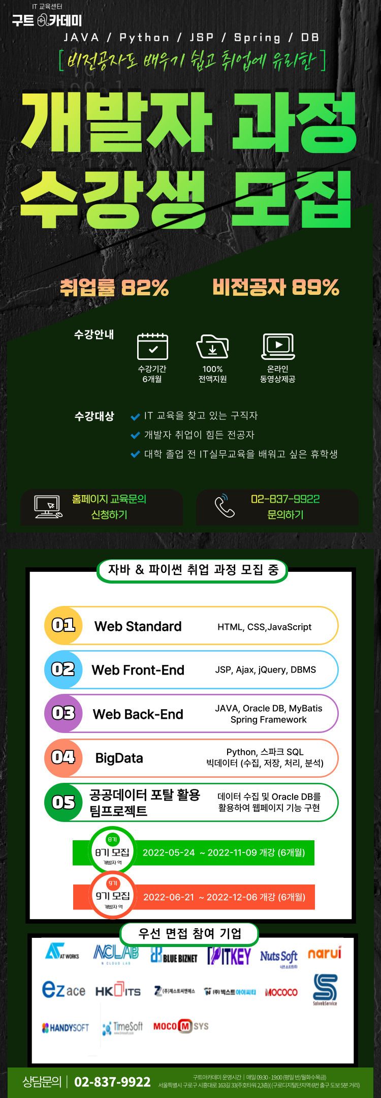 구로디지털단지에 위치한 구트아카데미는 다수의 자바 웹개발 국비교육을 운영하며,