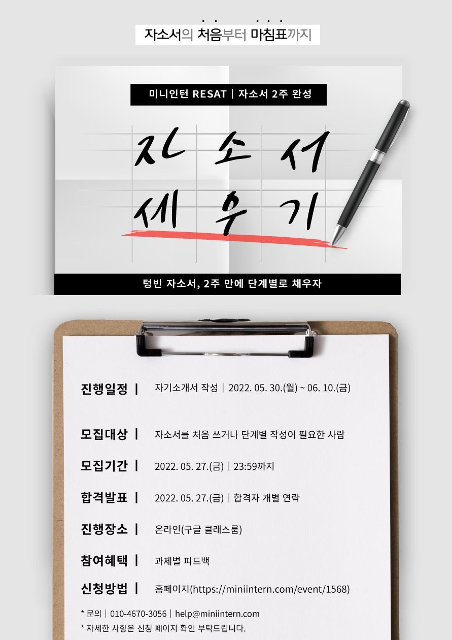 [오픈놀] 자소서 처음인 사람 2주간 같이 쓰자! RESAT 자소서 세우기 6기 모집