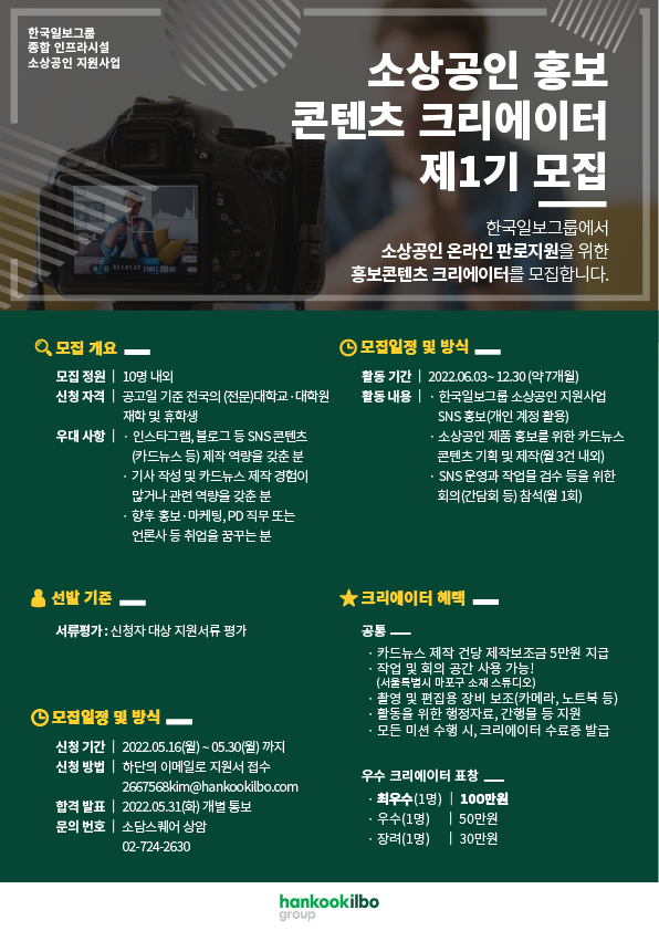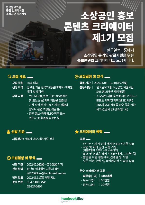 [한국일보그룹 소상공인 홍보콘텐츠 크리에이터 제1기 모집!]