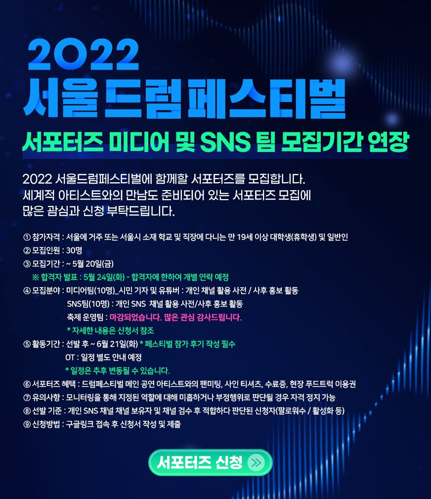 ☞ 참가자격 : 서울시 거주 또는 서울시 소재 학교 및 직장에 다니는 만 19세 이상 대학생(휴학생) 및 일반인
