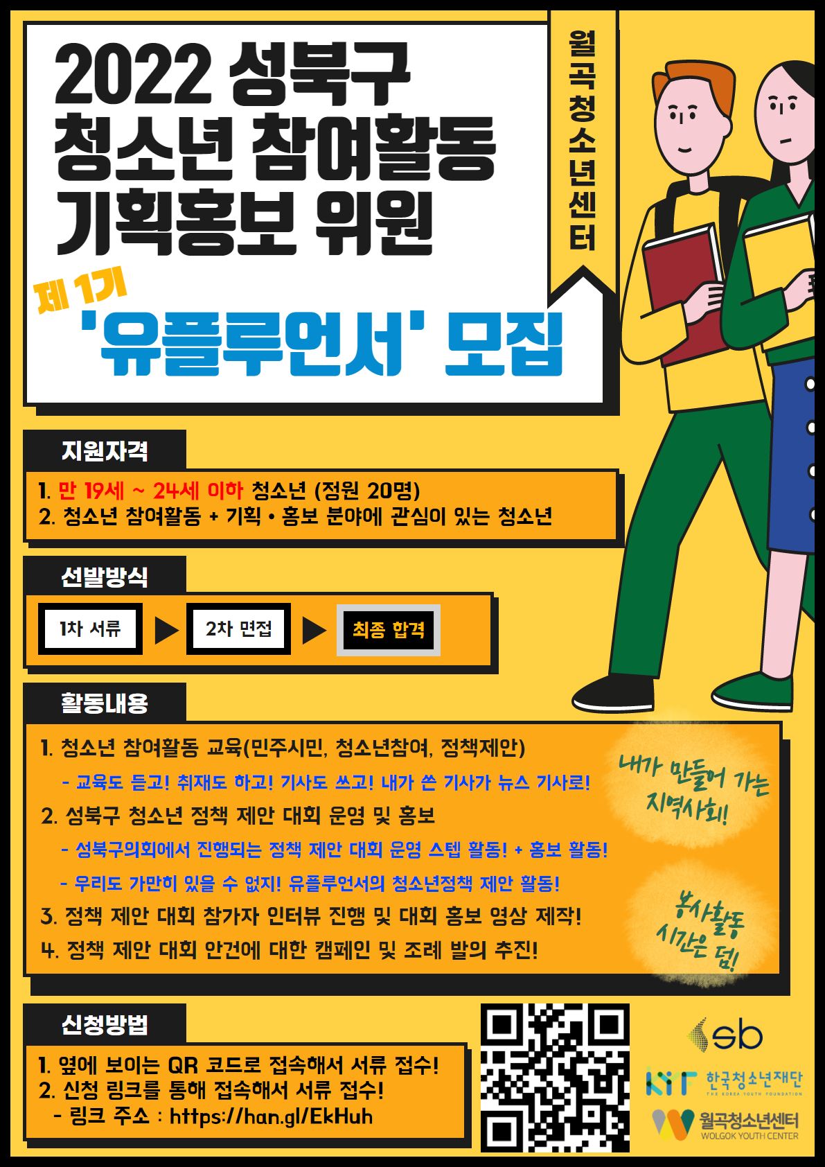 2022 성북구 청소년참여활동 기획홍보 위원 '제 1기 유플루언서' 모집