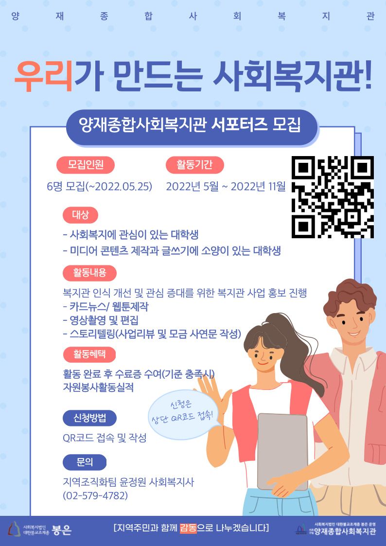 - 양재종합사회복지관의 홍보요정 서포터즈! 서포터즈 5기를 모집합니다!