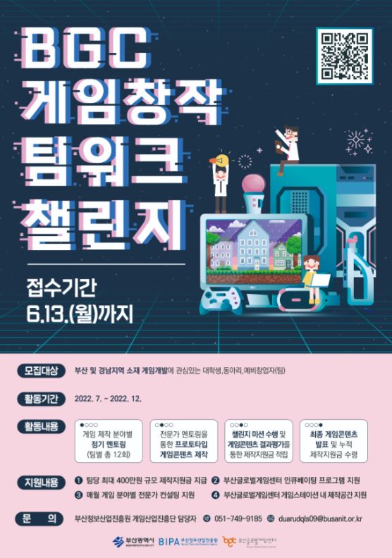 ☆응모자격 : 부산·경남지역 소재 게임개발에 관심 있는 4인 이하의 대학생, 동아리, 예비창업자(팀)