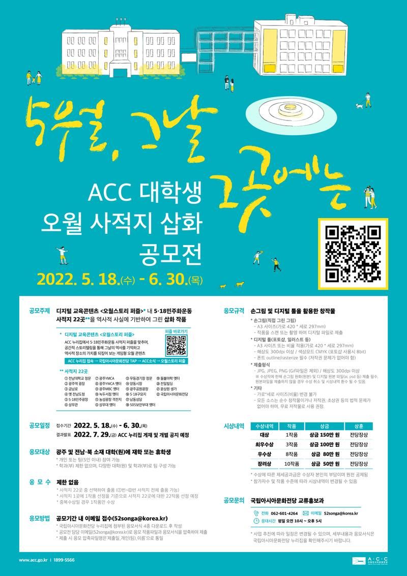 - 결과발표: 2022. 7. 29.(금) ACC 누리집 게재 및 개별 공지 예정