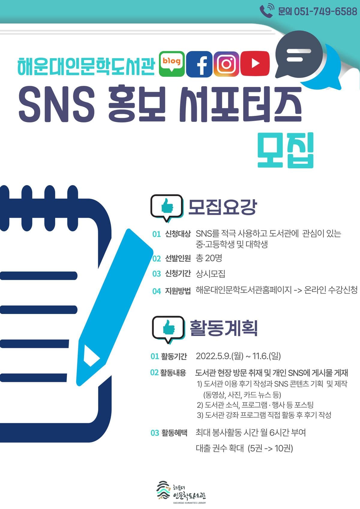 2022 해운대인문학도서관 SNS 홍보서포터즈 모집