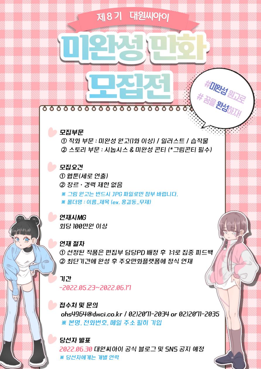 ① 작화 부문 : 미완성 원고(1화 이상) / 일러스트 / 습작물