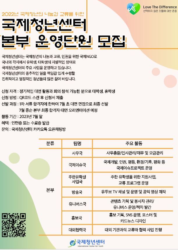국제청년센터 본부 운영단원 3기 모집