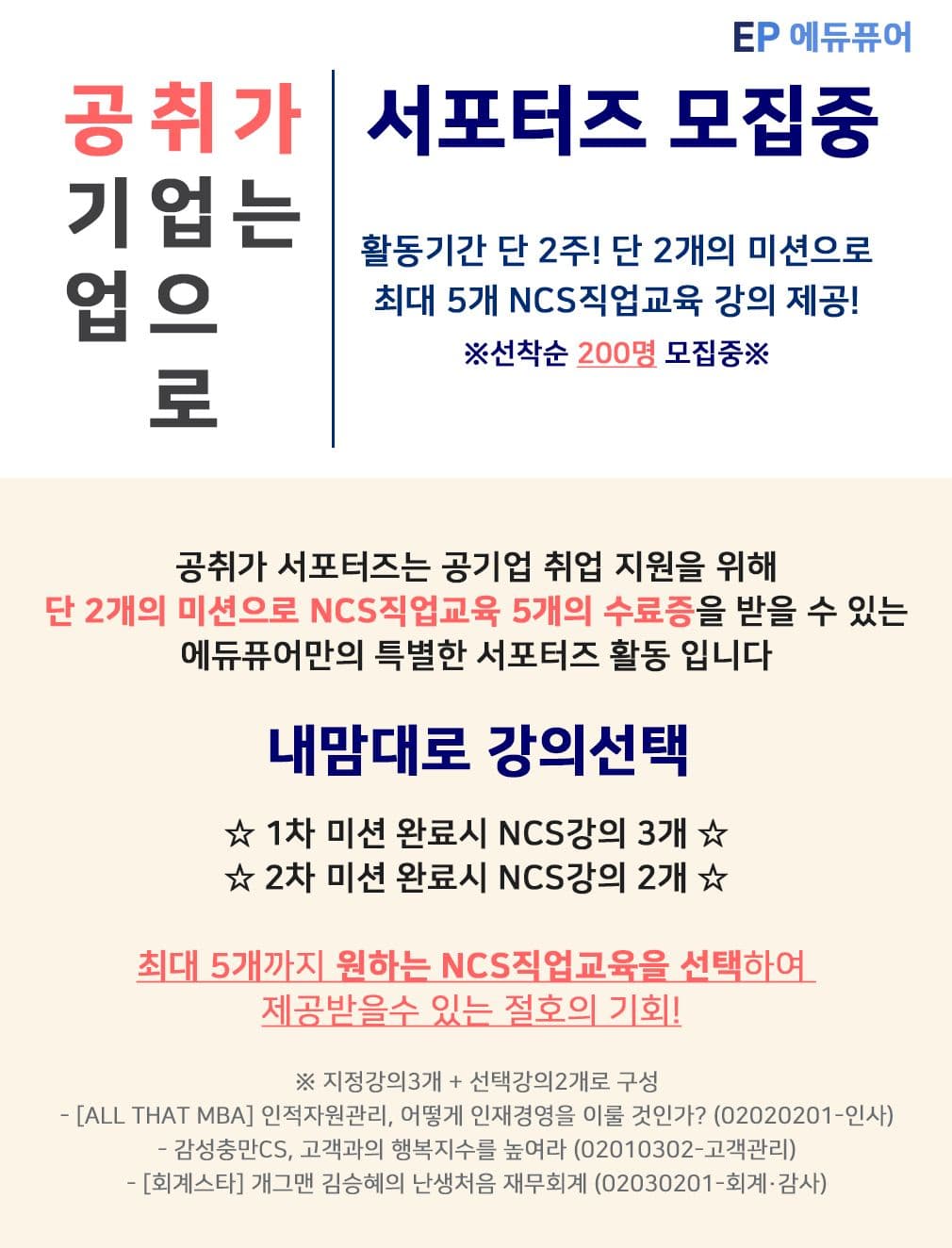 하반기 대비하실 수 있는 2주간 직업교육 5개를 무료로 제공 받을 수 있는 서포터즈를 소개합니다 🎉