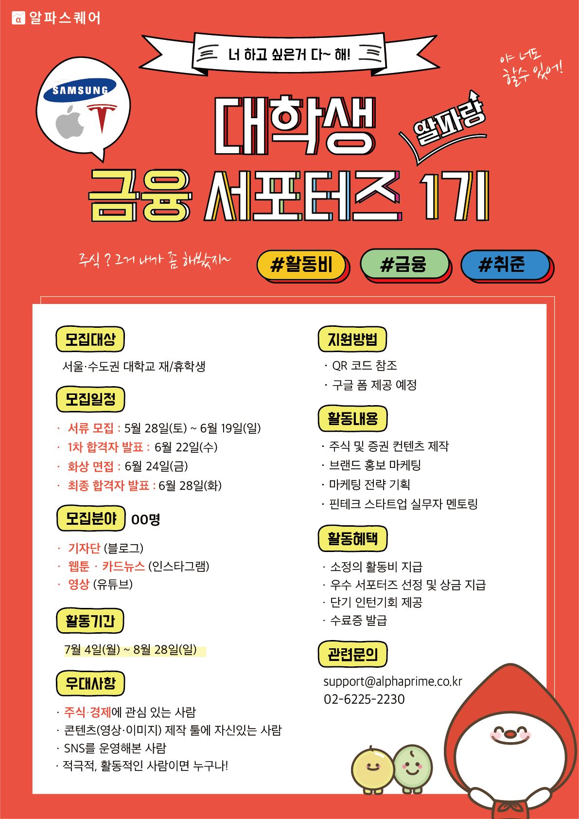 알파랑 서포터즈는 알파스퀘어 공식 대학생 서포터즈 입니다.