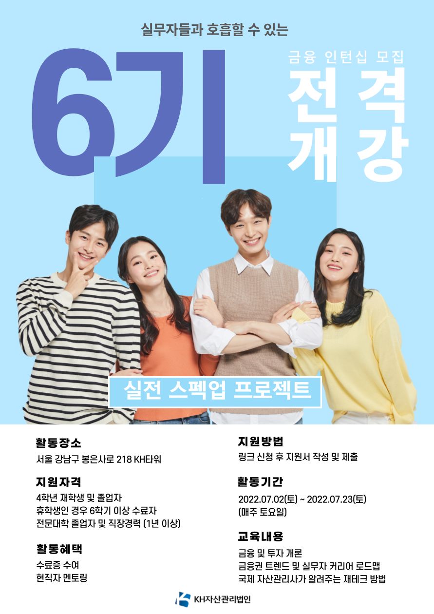 KH자산관리법인 금융권 실무자들과 함께 호흡 할 수 있는 실전 스펙업 프로젝트 "금융인턴십 모집 6기!!"