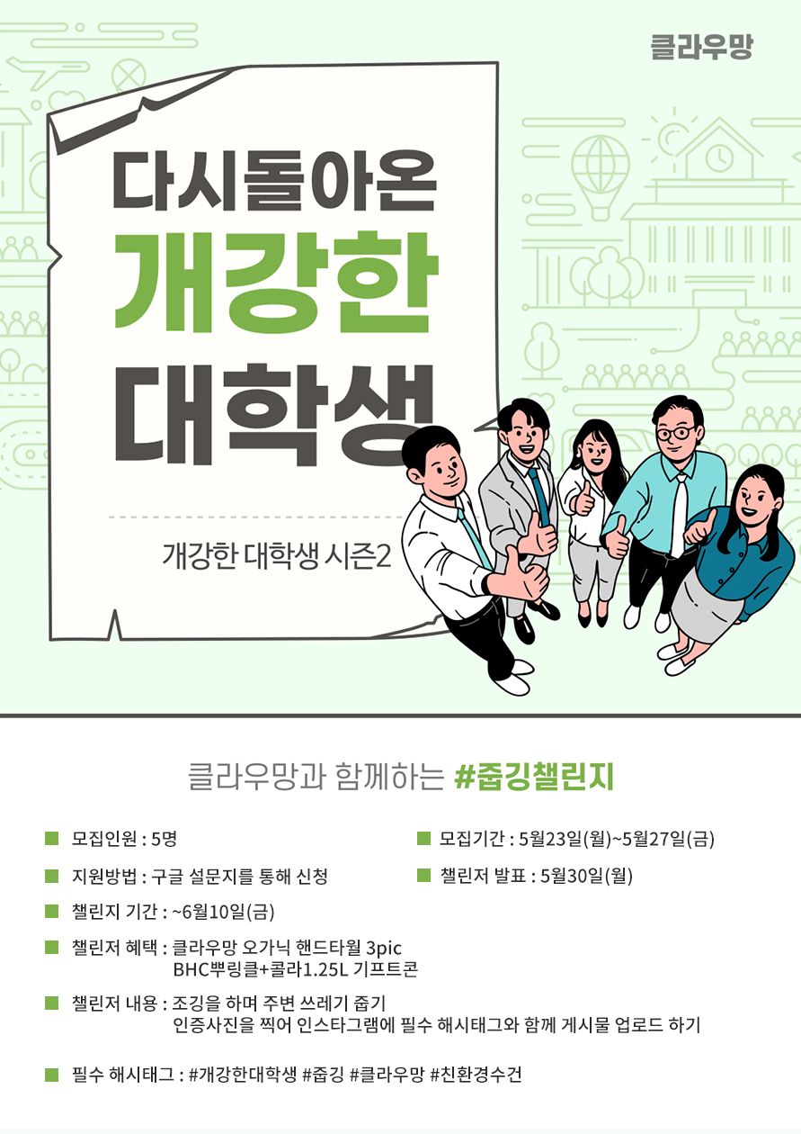 ◾️필수 해시태그 : #개강한대학생 #줍깅 #클라우망 #친환경수건