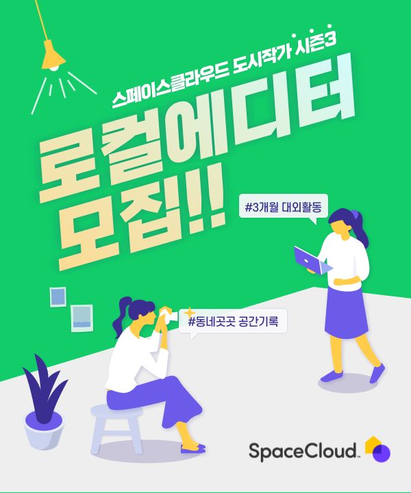 사회적 거리두기로 인해 잠시 쉬어갔던, 스페이스클라우드 도시작가(서포터즈) 활동이 시즌 3 '로컬에디터'로 다시 시작 됩니다. 이번 활동에서는 '나만의 로컬'을 설정한다는 점과 더불어 5가지 혜택으로 도시작가 분들과 함께 합니다. 멋진 대외활동겸 콘텐츠 프로젝트가 될테니 많은 관심과 참여 부탁드려요!