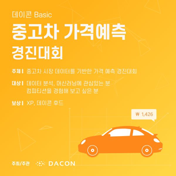 안녕하세요 여러분! 중고차 가격 예측 경진대회에 오신 것을 환영합니다!