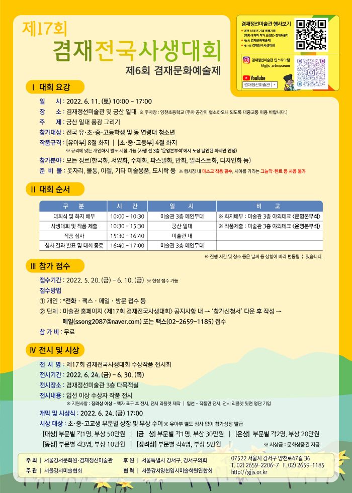제17회 겸재전국사생대회식 및 화지배부 | 10:00 ~ 10:30 | 겸재정선미술관 3층 야외데크무대