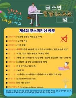 ■ 특 전 : 수상작은 코스미안뉴스 칼럼니스트로 활동 기회 제공