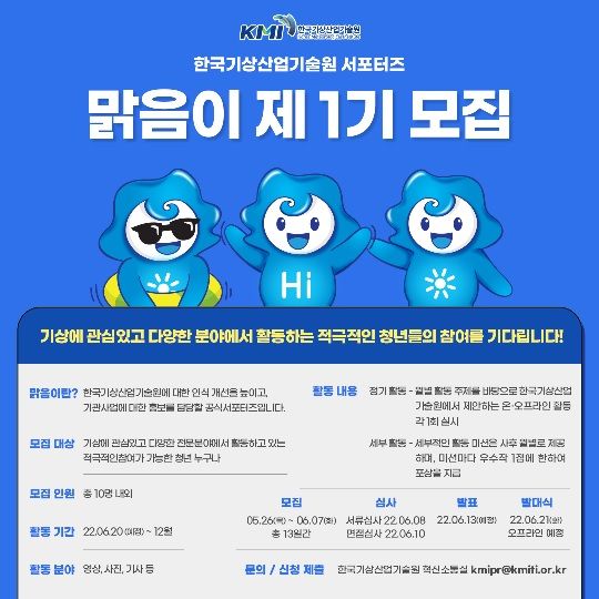 한국기상산업기술원 서포터즈 맑음이 제1기 모집