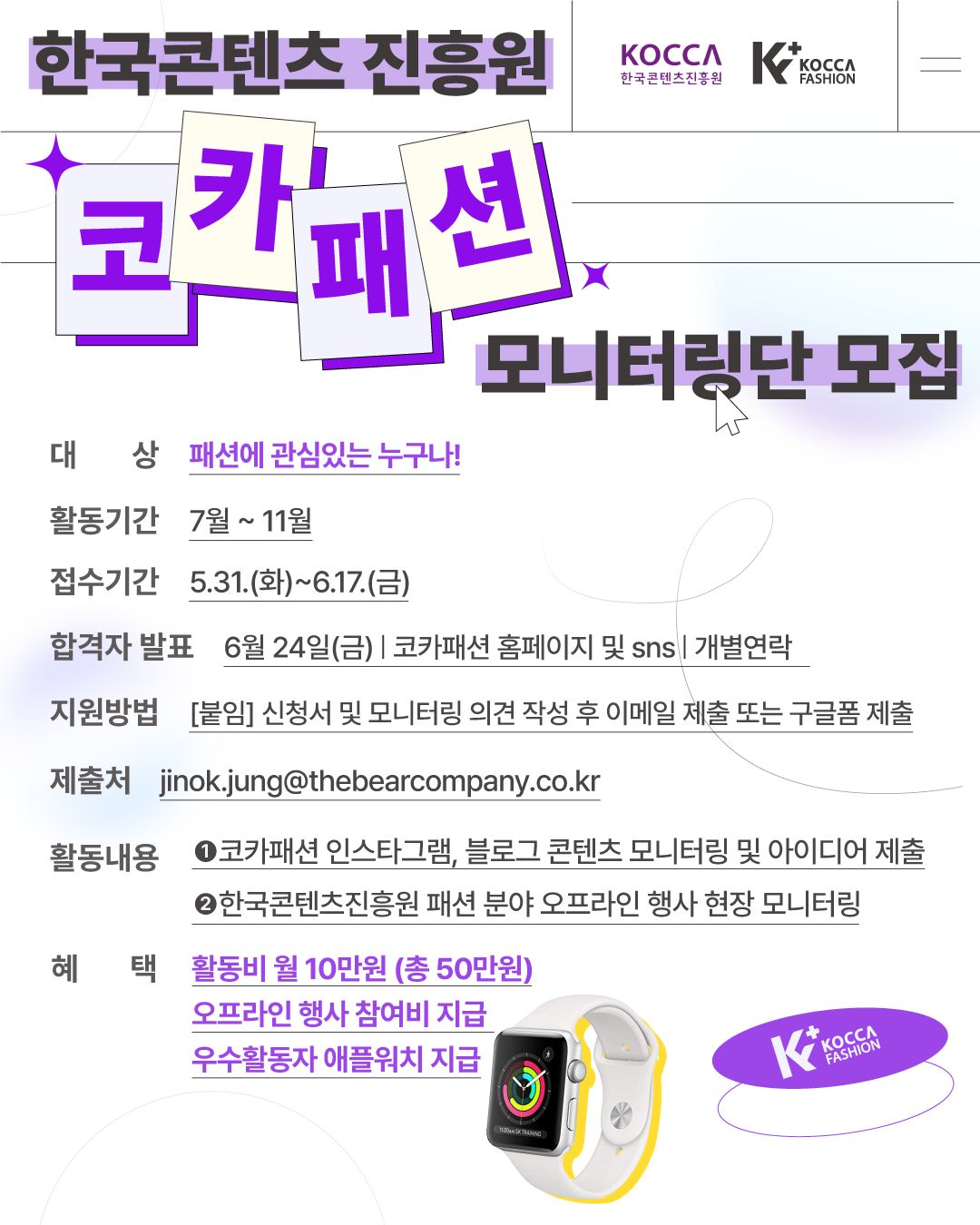 한국콘텐츠진흥원 패션분야 사업 (코카패션) 모니터링단 모집