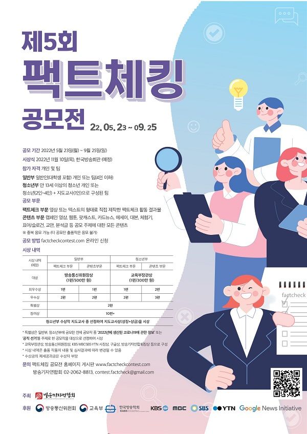 - 팩트체킹 공모전 홈페이지(www.factcheckcontest.com)에서 접수 가능