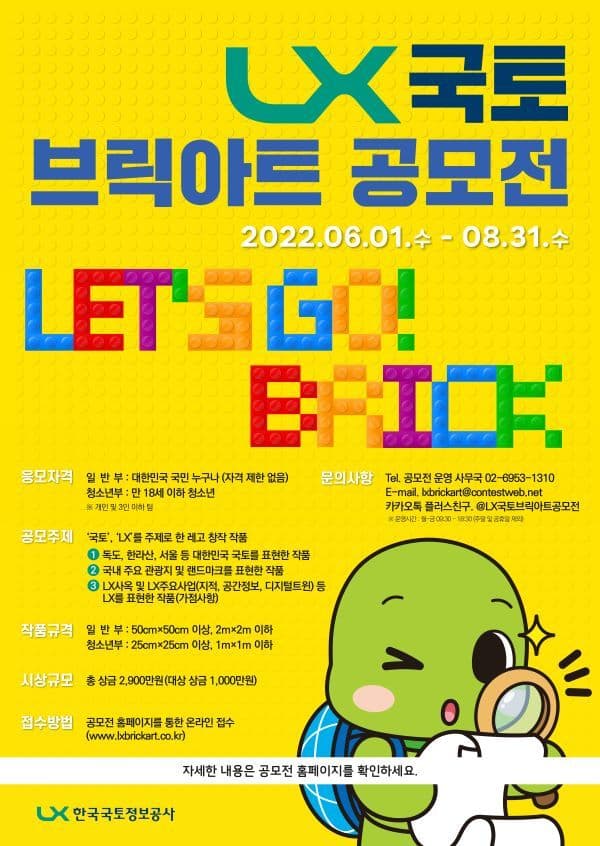 스마트 사회를 선도하는 국토정보 플랫폼, LX 한국국토정보공사가 “LX 국토 브릭아트 공모전”을 개최합니다.
